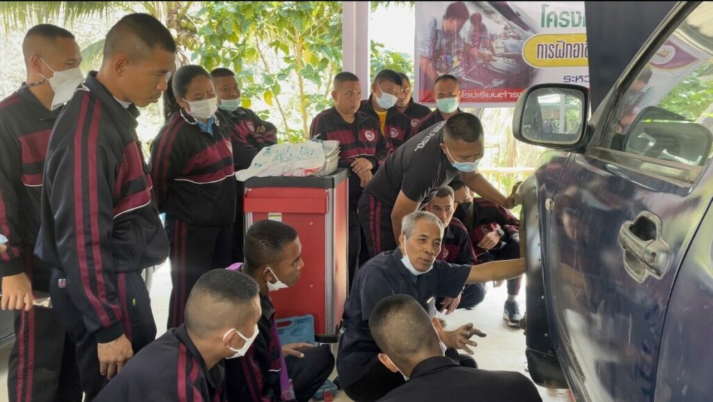 “โดยในวันนี้ได้มอบหมายให้ลงพื้นที่ จ.กาญจนบุรี เพื่อตรวจเยี่ยมการฝึกอบรมของสำนักงานพัฒนาฝีมือแรงงานกาญจนบุรีตามโครงการอันเนื่องมาจากพระราชดำริ ในหลักสูตรช่างบำรุงรักษารถยนต์ ระดับ 1 ซึ่งฝึกอบรมระหว่างวันที่ 23-25 มกราคม 2566 ให้แก่กลุ่มตำรวจตระเวนชายแดนจำนวน 20 คน ณ โรงเรียนตำรวจตระเวนชายแดนเฮงเค็ลไทย ต.บ้องตี้ อ.ไทรโยค จ.กาญจนบุรี” น.ส.บุปผากล่าวและว่า ผู้ที่เข้าฝึกอบรมในครั้งนี้ จะได้รับความรู้เกี่ยวกับการบำรุงรักษารถยนต์ การใช้เครื่องมือ ตลอดจนความปลอดภัยในการทำงาน ซึ่งจะสามารถนำความรู้ที่ได้ไปประกอบอาชีพเพื่อหาเลี้ยงตนเองและครอบครัว หรือลดค่าใช้จ่ายในครัวเรือนได้ โครงการนี้ดำเนินการในพื้นที่ 31 จังหวัด ได้แก่ สุพรรณบุรี ชลบุรี ราชบุรี นครราชสีมา ขอนแก่น อุบลราชธานี นครสวรรค์ พิษณุโลก สงขลา ระยอง อุดรธานี เชียงใหม่ เชียงราย นครศรีธรรมราช ยะลา นราธิวาส จันทบุรี ฉะเชิงเทรา สระแก้ว บุรีรัมย์ สุรินทร์ ศรีสะเกษ ชัยภูมิ เลย มหาสารคาม สกลนคร มุกดาหาร น่าน พะเยา แม่ฮ่องสอน และกาญจนบุรี ผู้ที่สนใจฝึกอบรมสามารถติดต่อสอบถามได้ที่สถาบันและสำนักงานพัฒนาฝีมือแรงงานดังกล่าว หรือ ดูรายละเอียดผ่านทางเว็บไซต์ www.dsd.go.th