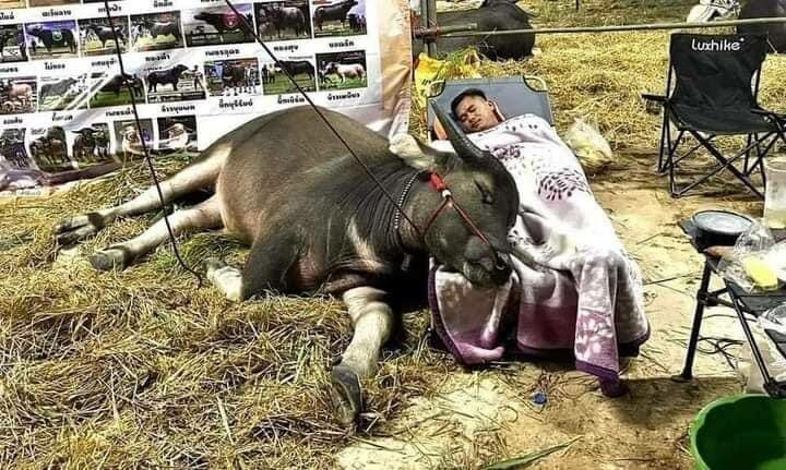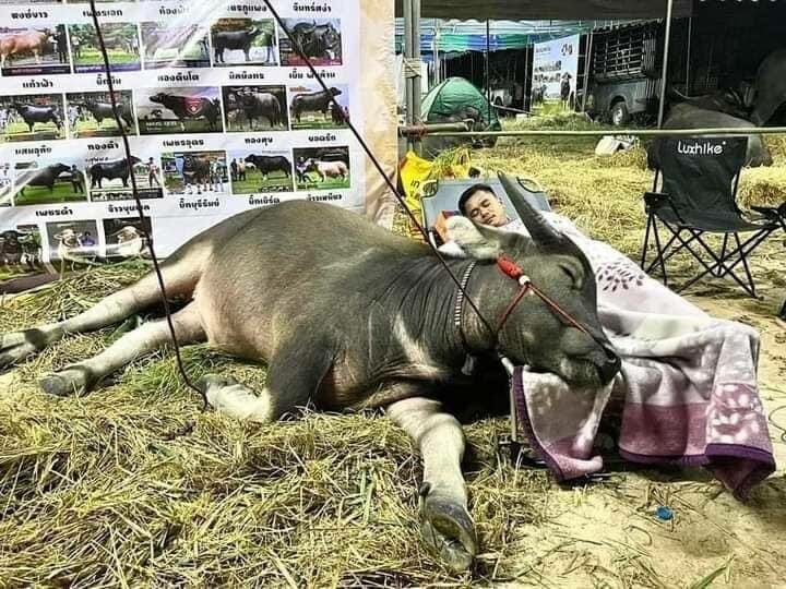 ในเวลาต่อมาผู้สื่อข่าวลงพื้นที่ตามหาคนนอนกับควาย ตามที่ปรากฎระหว่างรอลงประกวดในงานประกวดควาย ที่อุทยานเทคโนโลยีการเกษตร มหาวิทยาลัยขอนแก่น ซึ่งภายในงานมีกิจกรรมประกวดควายไทย โดยไม่พบเจ้าแสนเอกตามที่ปรากฎในภาพ เนื่องจากสภาพร่างกายไม่พร้อม ฟาร์มจึงเก็บตัวไว้ลงประกวดรายการหน้า แต่พบแม่แสนสุข ซึ่งเป็นแม่ของแสนเอกเข้าประกวดแทน ท่ามกลางผู้ที่ชื่นชอบความไทยนำความสายพันธุ์ต่างๆจากทั่วทั้งประเทศเข้าร่วมในการประกวดครั้งนี้อย่างคึกคัก