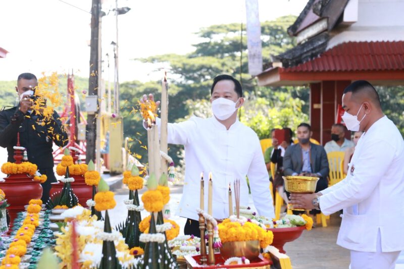 เวลา 09.09 น. วันที่ 22 พ.ย. 64 นางอทิตาธร วันไชยธนวงศ์ นายกองค์การบริหารส่วนจังหวัดเชียงราย ร่วมพิธีบวงสรวงพระธาตุจอมทอง พิธีทำบุญทักษิณาอุทิศถวายแด่พญามังรายมหาราช และบุรพกษัตริย์ทุกพระองค์ และพิธียกฉัตรถวายองค์พระประธานประจำวิหารหลวงพระธาตุดอยจอมทอง โดยมีนายภาสกร บุญลักษม์ ผู้ว่าราชการจังหวัดเชียงราย เป็นประธาน พร้อมด้วย พระครูโสภณศิลปาคม เจ้าคณะตำบลเวียงเขต 1 ผู้รักษาการแทนเจ้าอาวาสวัดพระธาตุจอมทอง เป็นประธานฝ่ายสงฆ์ นายวันชัย จงสุทธนามณี นายกเทศมนตรีเทศบาลนครเชียงราย พล.ต.ศุภฤกษ์ สถาพรผล ผู้บัญชาการมณฑลทหารบกที่ 37 ตลอดจนหน่วยงานราชการและคณะศรัทธา ร่วมพิธีเพื่อถวายเป็นกุศลแด่บรรพบุรุษผู้ได้สร้างวัด เทพเทวดาผู้รักษาวัดพระธาตุดอยจอมทอง และเสริมสิริมงคลให้แก่ชาวเชียงราย