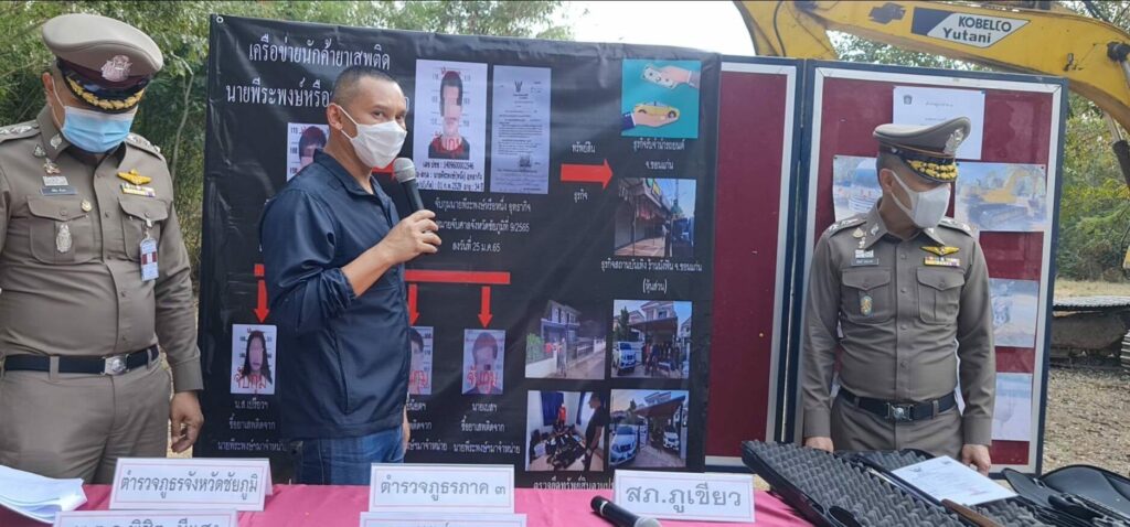 ทั้งนี้ก่อนจับกุมผู้ต้องหาทั้งสองรายสืบเนื่องจับกุม นายสุริยา เดชประกอบ อายุ 34 ปี อยู่บ้านเลขที่ 206 ม.6 ต.ทุ่งลุยลาย อ.คอนสาร จว.ชัยภูมิ เมื่อวันที่ 3 ก.พ.ที่กลางสวนยางพารา บ้านร่องแว่ ม.2ต.ทุ่งลุยลายอ.คอนสารจว.ชัยภูมิ พร้อมของกลางยาบ้า42,005เม็ดในพื้นที่สภ.ห้วยยาง อ.คอนสาร จากการสืบสวนขยายผลทราบว่าผู้ต้องหาทั้งสองเป็นเครือข่ายเดียวกันและสนิทกันเมื่อครั้งเคยเป็นทหารเกณฑ์ด้วยกันโดยนายสุริยา มีพฤติการณ์ จําหน่ายยาบ้าให้กับวัยรุ่นที่บริเวณบ้านกลางสวนยางพารา บ้านร่องแว่ เป็นประจําเและเก็บซุกซ่อนเพื่อจําหน่ายยาบ้าให้นายพีระพงษ์กับพวก