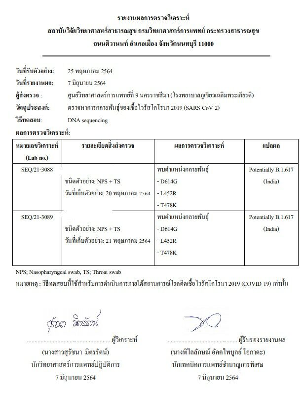 โดยทางโรงพยาบาลภูเขียวได้ส่งตัวอย่างเชื้อของผู้ป่วย 2 ราย มาให้ทางศูนย์วิทยาศาสตร์การแพทย์ที่ 9 นครราชสีมา วิเคราะห์เชื้อ และพบว่าเป็นเชื้อไวรัสโควิด-19 สายพันธุ์อินเดีย หลังจากนั้นในโลกโซเชียลได้พากันแชร์ข้อมูลว่าพบในพื้นที่ จ.นครราชสีมา