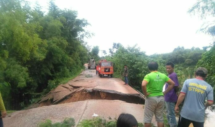 ทั้งนี้ ผู้ใหญ่บ้านทำไม้กั้นและสัญลักษณ์เตือนผู้ใช้รถใช้ถนน ให้ใช้ความระมัดระวังในการใช้เส้นทางผ่านในจุดนี้ด้วย เพราะมีน้ำป่าหลากทำให้มีถนนเข้าออกหมู่บ้านถูกน้ำป่ากัดเซาะขาดเสียหายในหลายจุด ทำให้ชาวบ้านถูกตัดขาดเข้าออกหมู่บ้านไม่ได้อีกหลายร้อยครอบครัว ต้องใช้ความระมัดระวังกันเป็นพิเศษในการใช้เส้นทางเข้าออกหมู่บ้านให้มากขึ้นด้วย ก่อนที่ทางจังหวัด อำเภอ จะเร่งสำรวจความเสียหายทั้งหมด เพื่อให้การช่วยเหลือประชาชนในพื้นที่ได้รับผลกระทบโดยเร็วต่อไป